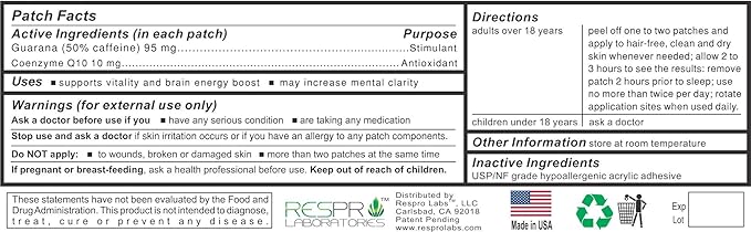 Natural Guarana and CoQ10 Energy Patch Plus, Continuous Release, 10 Patches