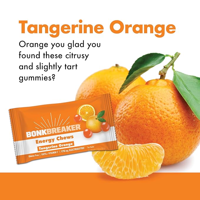 • Tangerine Orange Flavor Energy Chews: Includes 10 Packets of caffeine-free Bonk Breaker vegan energy gummies Two servings per packet, 20 servings total