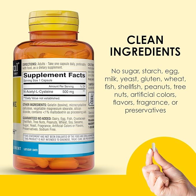 Mason Natura NAC N-Acetyl-L-Cysteine 500 mg, 6 Month Supply, Supports Normal Cellular Health, Immune System Booster for General Wellness, 3 Pack