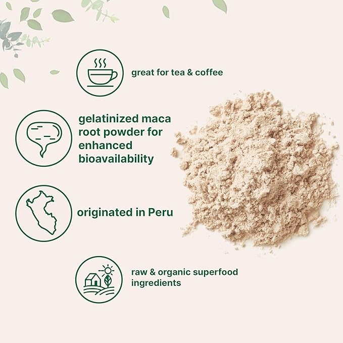 • Gelatinized Peruvian Maca Root Powder Organic, 2 Pound (32 Ounce), Best Superfoods for Adding to Coffee, Tea and Drinks, No GMOs and Vegan Friendly