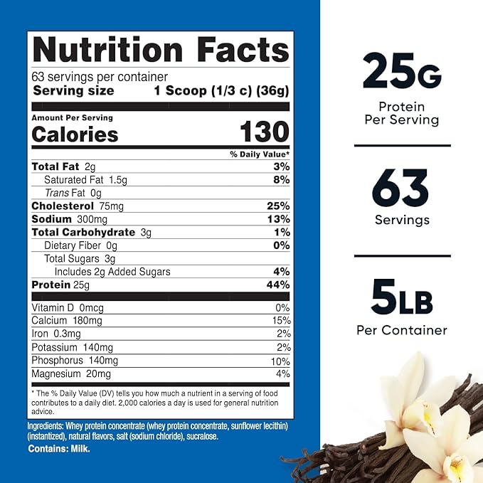 • Delicious Vanilla Flavored Whey Protein Concentrate