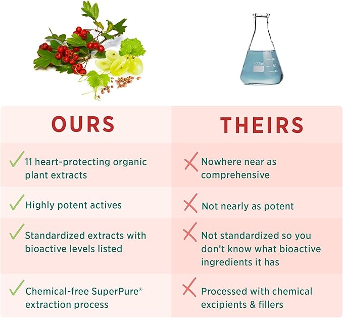 • COMPREHENSIVE HEART HEALTH: Each bottle (60 capsules) provides 11 heart-loving botanicals and enzymes, including top holistic herbs like hawthorn berry, resveratrol, and nattokinase plus quercetin from orange peel.