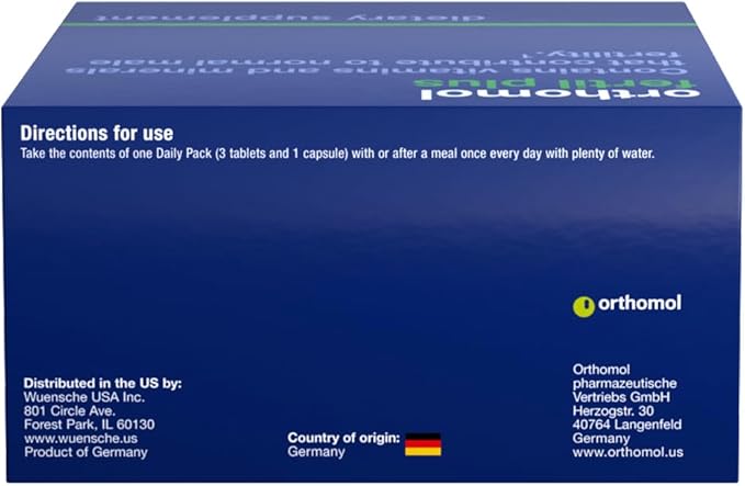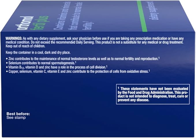 • Orthomol Fertil Plus offers micronutrients that can support male fertility: zinc contributes to normal fertility and reproduction; Selenium contributes to proper motility