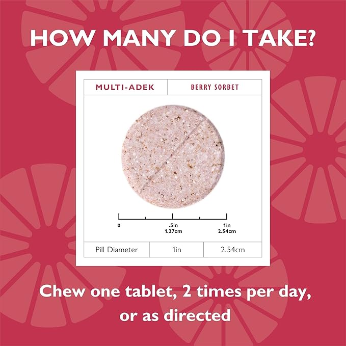 Celebrate Vitamins Multi ADEK Chewables, Iron Free - Daily Bariatric Multivitamin, High Level of Vitamins A, D, E, K & B12 for Duodenal Switch Surgery Patients - Berry Sorbert (60 Tablets)