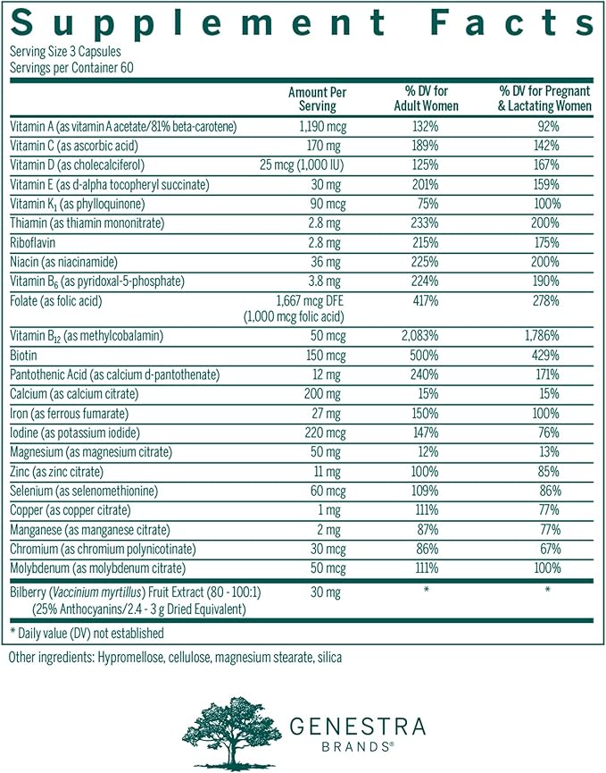 • Pregnancy Support: Broad spectrum pre- and postnatal multivitamin, multimineral and herbal formula, includes organic sources of minerals (citrate, fumarate and methionine). Healthful with adequate folate may reduce a woman's risk of having a child with a brain or spinal cord birth defect.* Provides the recommended daily intake of iron during pregnancy, and helps to prevent iron deficiency anaemia.*