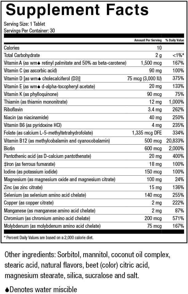 • Optimized Nutrient Absorption: Utilizes water-miscible forms of vitamins A, D, and E, which enhance absorption without the need for fat intake, and chelated minerals to improve absorption in a low-acidic environment that is common in weight loss surgery patients