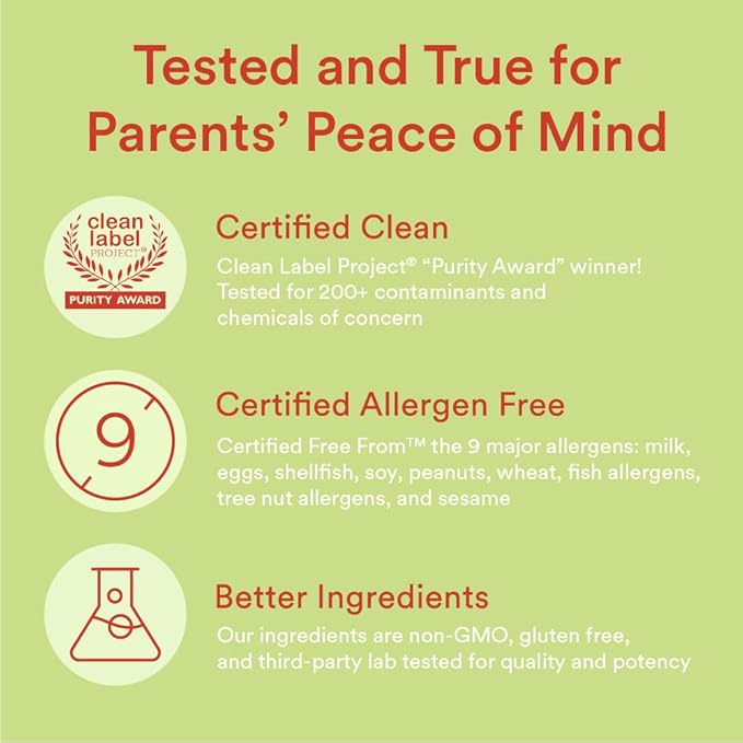 • CERTIFIED CLEAN, 3RD PARTY TESTED FORMULA: Our kids vitamins are a Clean Label Project Purity Award Winner! Subjected to strict testing for 200+ contaminants and chemicals, so you can be sure you're giving your family high quality vitamins you can trust