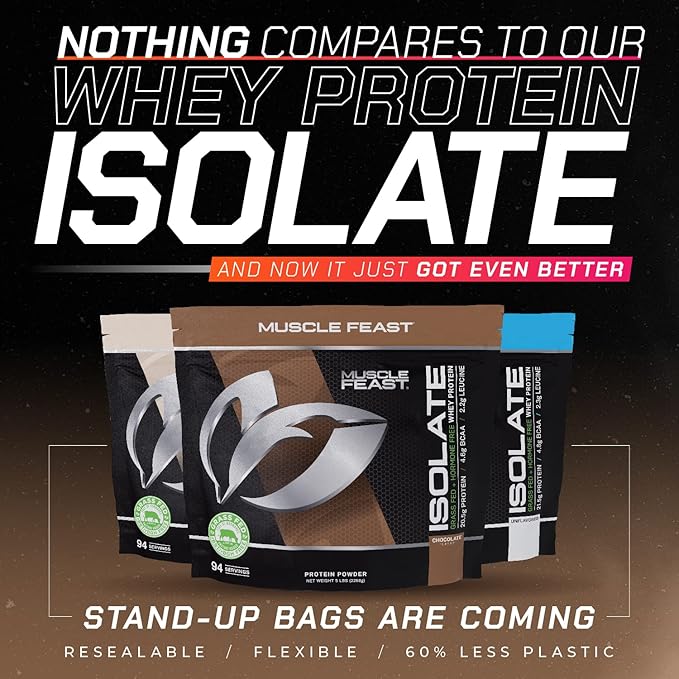 Muscle Feast Grass-Fed Whey Protein Isolate, All Natural Hormone Free Pasture Raised, Vanilla, 5lb (94 Servings)