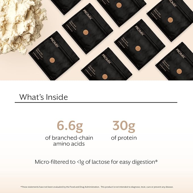 Promix Whey Protein Isolate Powder, 30g Grass Fed Whey Isolate, 6.6g BCAAs, Gluten Free, Keto Friendly, Unflavored, 2.5lb