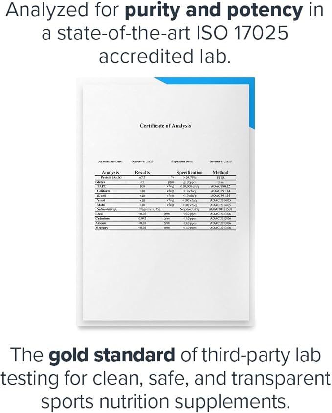 • Tested for purity and potency in an ISO 17025 accredited third-party lab. Every bag of our Plant+ non dairy protein powder is guaranteed to provide exactly what the label claims and nothing else.