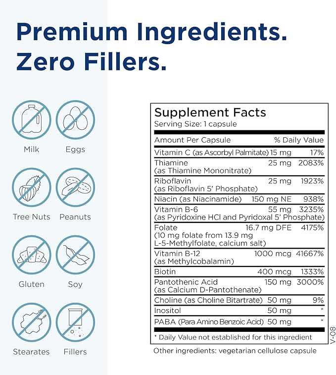 • Comprehensive Mood Support Supplement - Formulated with a full spectrum of highly bioavailable B vitamins, our B-Complex formula includes cofactors important for optimal L-methyfolate metabolism, as well as supporting the wide array of metabolic functions requiring these essential nutrients.*