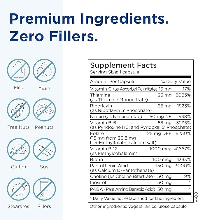 • Advanced Folate + Cofactors - Active folate pairs with vitamin b essentials and crucial cofactors in gluten-free vegetarian capsules. This full spectrum b complex includes niacin, Vitamin B6, Vitamin B12, Choline, Vitamin C, Pantothenic Acid and more.*