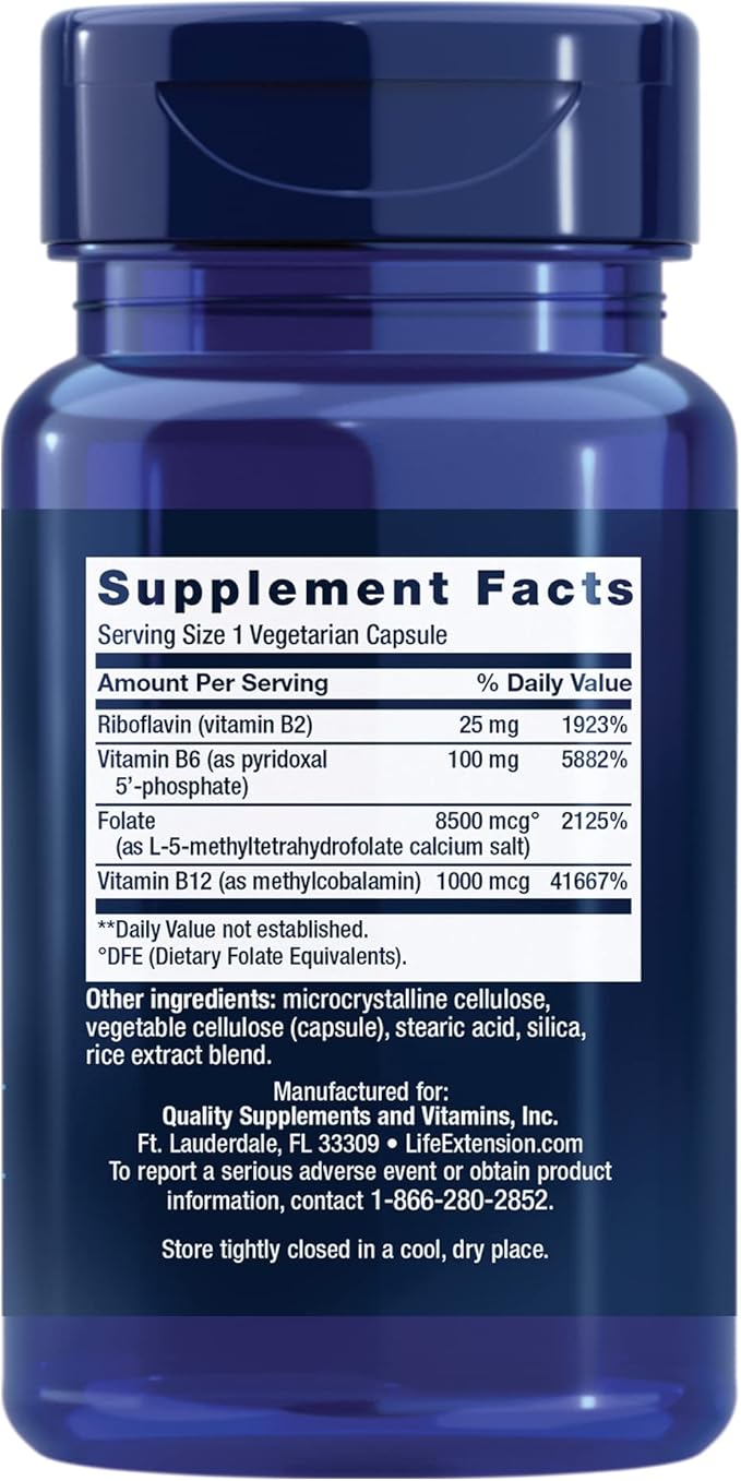 Life Extension Homocysteine Resist - For Heart & Brain, Cognitive Health Support Supplement – Vitamin B2, B6 & B12 + Folate - Once-Daily, Non-GMO, Gluten-Free - 60 Vegetarian Capsules