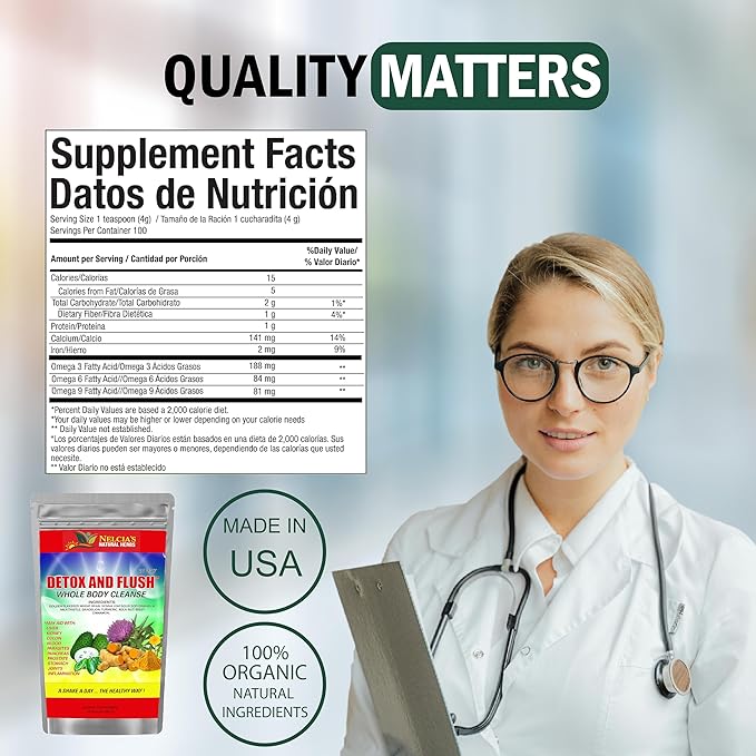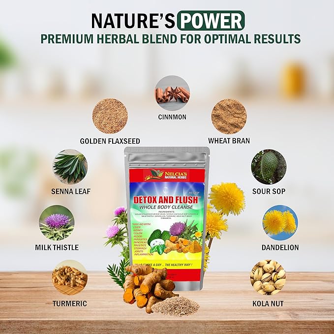 NELCIA'S NATURAL HERBS- DETOX & FLUSH, Whole Body Cleanse in 21 Days- Dietary Supplement - 14 oz - Enhanced with Milk Thistle Extract