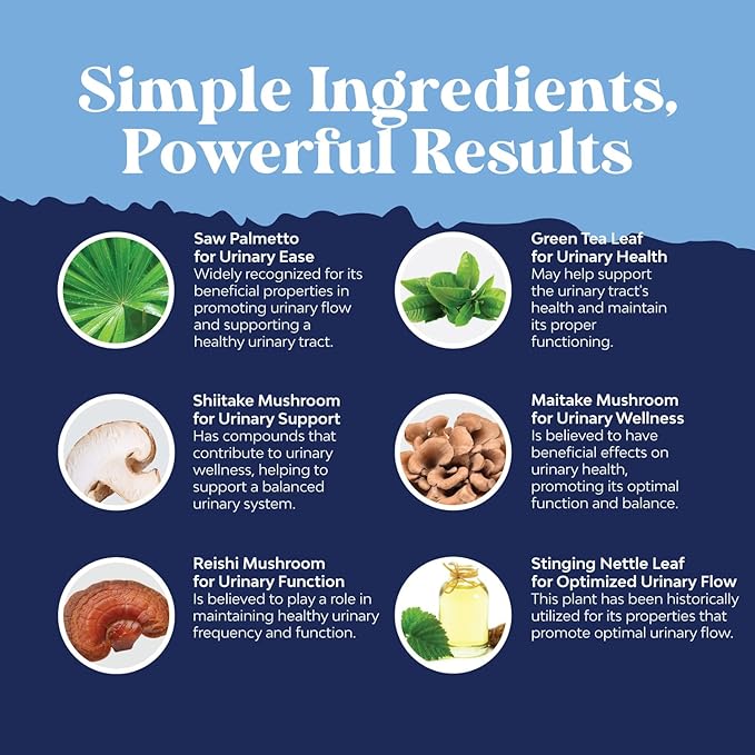 • Fewer Bathroom Trips - Minimize your pit stops with our advanced complex with saw palmetto berries and beta-sitosterol to help decrease pressure on the prostate better flow and increased emptying