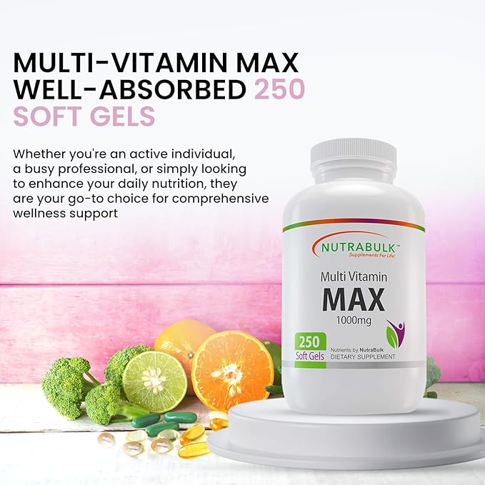 • Daily Wellness Support: Whether you're an active individual, a busy professional, or simply looking to enhance your daily nutrition, NutraBulk Multi-Vitamin MAX is your go-to choice for comprehensive wellness support. Each bottle contains 250 easy-to-swallow soft gels, providing a convenient and long-lasting supply to support your daily wellness regime