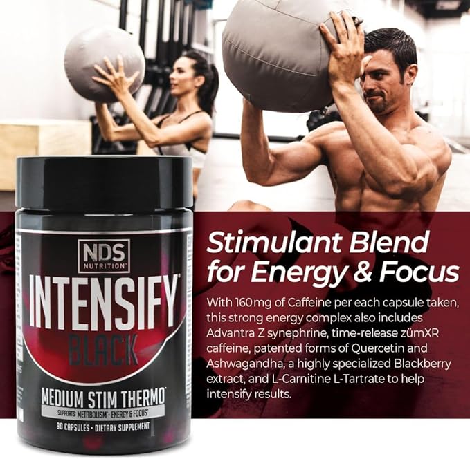 • Healthy Metabolism And Energy: Intensify BLACK helps provide stronger daily energy levels while also helping to metabolize and burn fat quickly. This potent energy blend offers 160mg Caffeine per capsule and also includes Advantra Z synephrine, time-release zümXR caffeine, patented forms of Quercetin and Ashwagandha, and L-Carnitine L-Tartrate to help intensify energy levels and enhance focus.