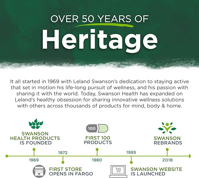 • Our quality commitment: For over 50 years, Swanson has delivered science-backed health products worldwide; Each wellness supplement is made in our GMP certified facilities, and our purity and potency testing includes independent third-party labs