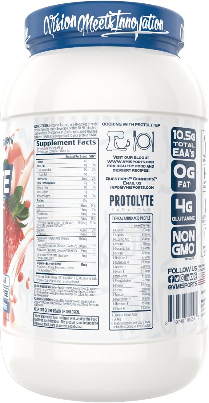 VMI Sports | Protolyte Whey Isolate Protein Powder | Low-Calorie Whey Protein Powder for Weight Loss | Protein Powder for Muscle Gain | Non-GMO (Strawberry Milkshake, 1.6 Pounds)