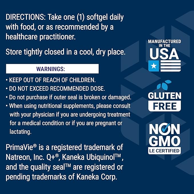 • Special Ingredients : PrimaVie® Shilajit fulvic acid complex, Ubiquinol (as Kaneka Ubiquinol™)