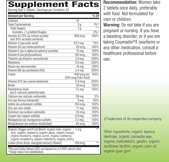 • A multivitamin for women with one serving of vegetables and fruits.** Made with organic kale, acai, and raspberry.