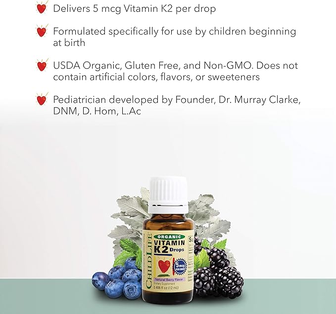 • SUPPORTS BONE HEALTH - ChildLife Essentials Organic Vitamin K2 promotes healthy bone development and helps maintain proper calcium levels in growing children