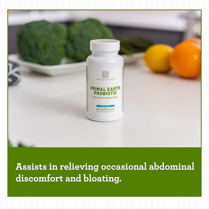 Amy Myers MD Prescription Strength Soil Based Probiotic Three Strains - Primal Earth SBO Probiotics for Normal Bowel Pattern & Healthy GI Microflora - Supports Stomach Discomfort, Bloating and Nausea