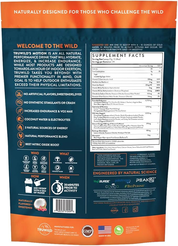 TruWild Motion - 3 Pack, All Natural Plant Based Vegan Pre Workout Powder for Men & Women, Clean Energy Supplement with Electrolytes, Increased VO2 Max, No Chemicals, Fillers or Synthetic Stimulants
