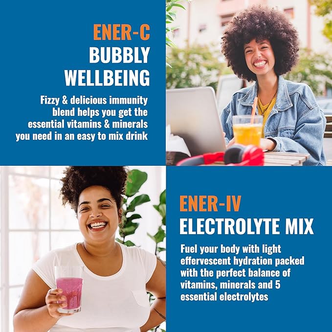 Ener-C & Ener-IV Drink Mix Pack- Vitamin Packets for Water, Electrolytes Powder Packet, Hydration Liquid Mix, Immune Booster for Adults, Healthy Energy, Low Sugar Rehydration for Women & Men- 42 Count