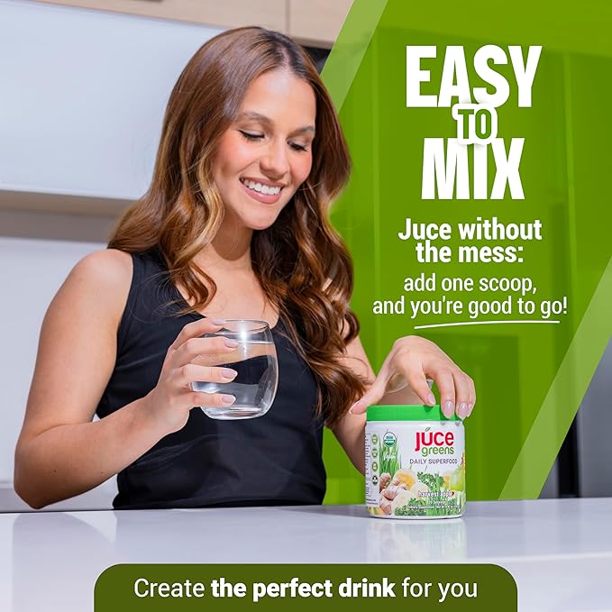 • PURE & DELICIOUS : Our greens and superfoods blend is USDA Certified Organic, Vegan, & Non GMO and contains no Dairy, Soy, Gluten, Gelatin, or Artificial Ingredients. It's bursting with apple flavor and blends easily into juices, smoothies, and protein shakes.