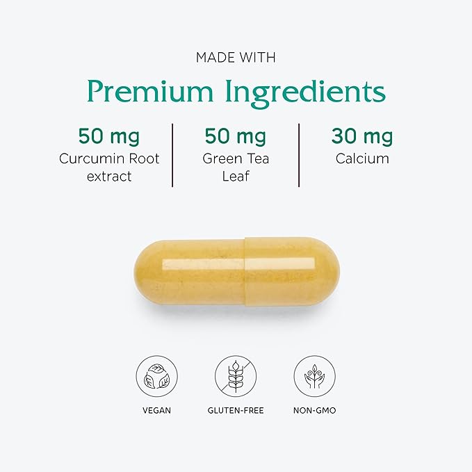 • Curcumin is included to maintain a healthy inflammation response. Green Tea is added for its antioxidant and cellular support. L-Theanine adds a level of calming support to address the possible stressors accompanying this time of hormonal change