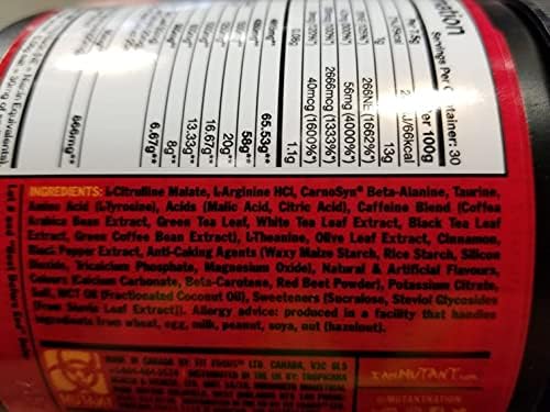 • A MUTANT CREATION OF ARGININE, CITRULLINE, BETA-ALANINE & MORE | For your most extreme, highest intensity workouts we’ve combined arginine, citrulline, beta-alanine, more premium ingredients to give you the boost you need for your most hardcore workouts.