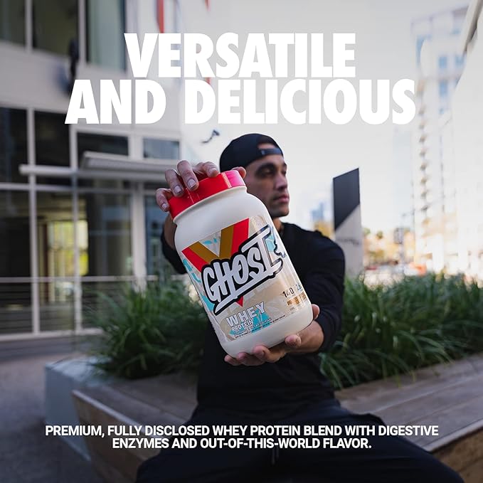 • Versatile and Delicious AF: GHOST WHEY protein combines a premium, fully disclosed whey protein blend, a few digestive enzymes, and out-of-this-world Peanut Butter Cereal Milk flavor. 26 servings.