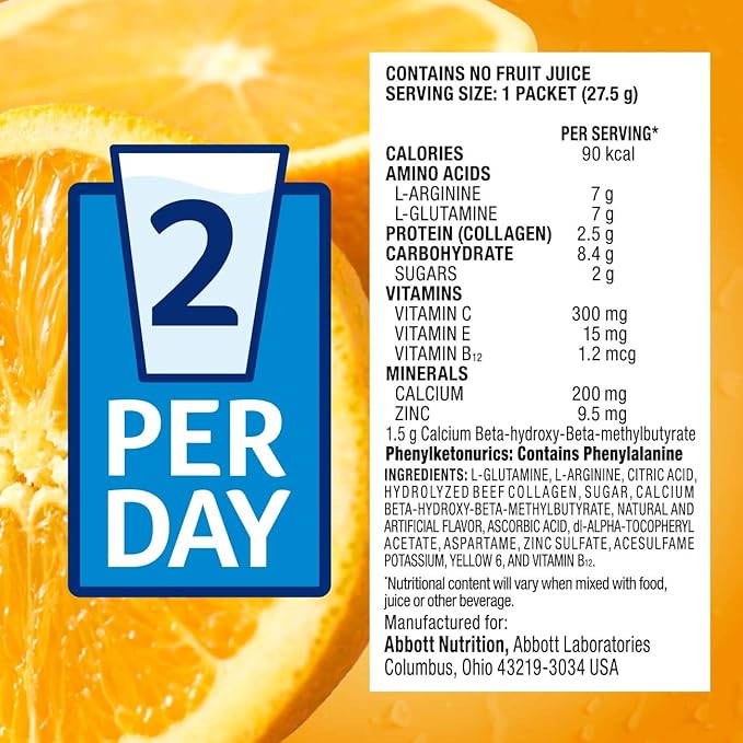 Juven Therapeutic Nutrition Drink Mix Powder for Wound Healing Support, Includes Collagen Protein, Orange, 30 Count