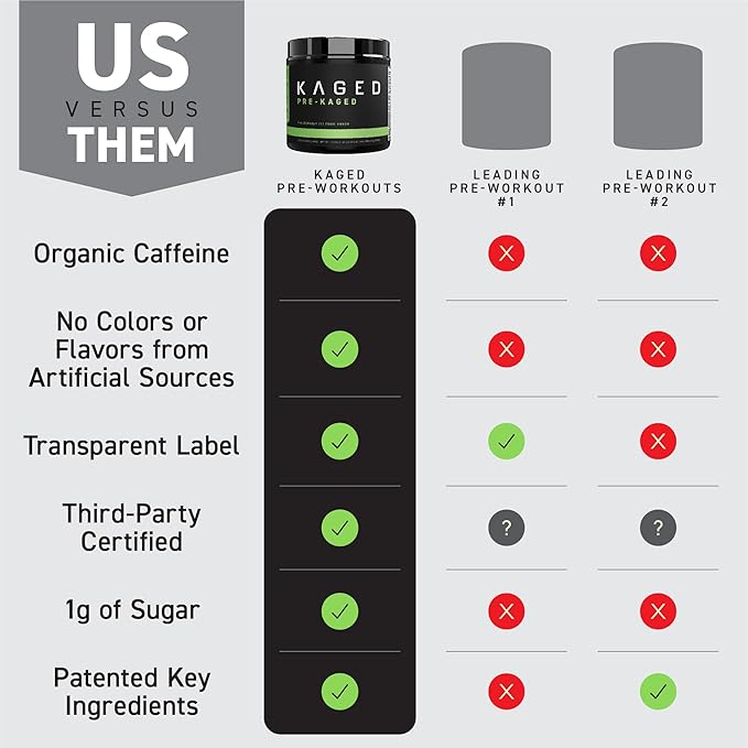 • The industry largest, most fully dosed scoop: With max dose ingredients, and a massive 32g per serving, just one scoop does it all. Kaged Muscle is a health-forward brand, so like all our products, PRE-KAGED has been 3rd party tested, screened for banned-substances, and our ingredient profiles are transparent. So, even the most meticulous athletes can see exactly what they’re getting. There’s a reason it’s one of the highest-rated & most-awarded pre-workout supplements available.