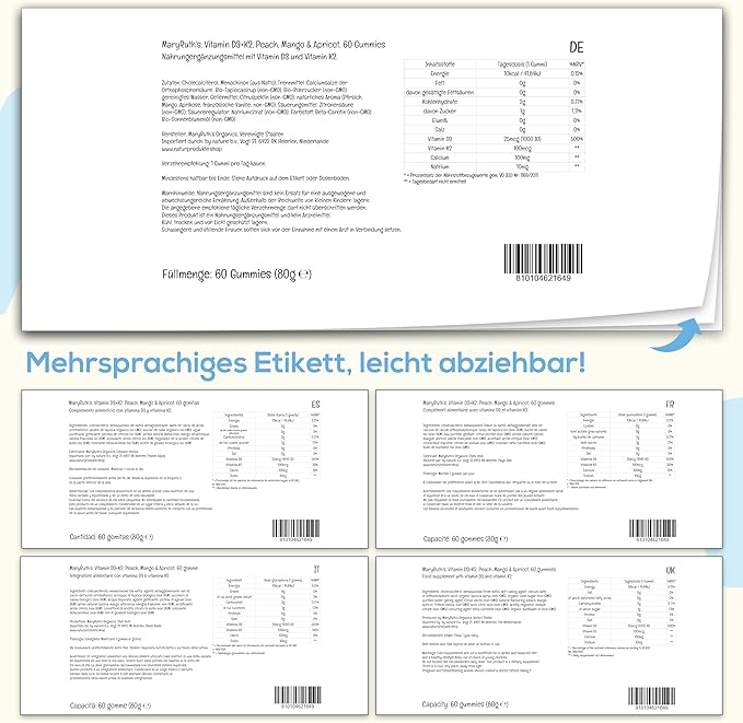 • Vitamin D3 K2 Calcium Gummies: Our delicious gummies have three flavors in one bottle: Peach, Mango & Apricot, and are made from lichen and natto. Very few foods in nature contain vitamin D and most D3 supplements are sourced from lanolin — the fat of lamb’s wool; ours is sourced from lichen.