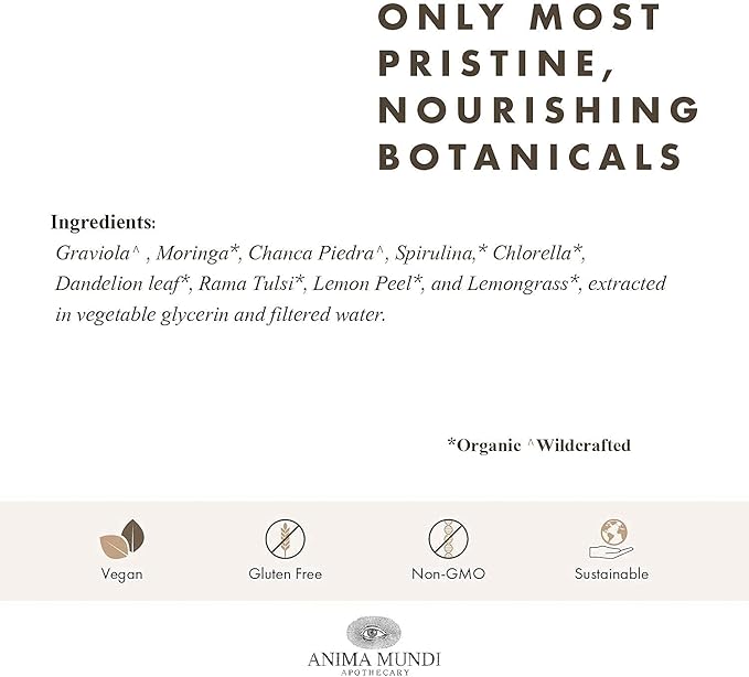 • Formulated by clinical herbalists. Handcrafted in Brooklyn with sustainably sourced ingredients from around the world. Organic, biodynamic, and vegan. All Anima Mundi Apothecary products are non-GMO, gluten free, and use fair trade practices.