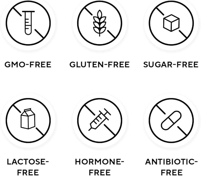 • Get our naturally sweetened and flavored whey isolate protein powder made with hormone-free Truly Grass Fed milk from Ireland that’s gentle on the stomach, easy to digest, and doesn’t cause bloating or discomfort.