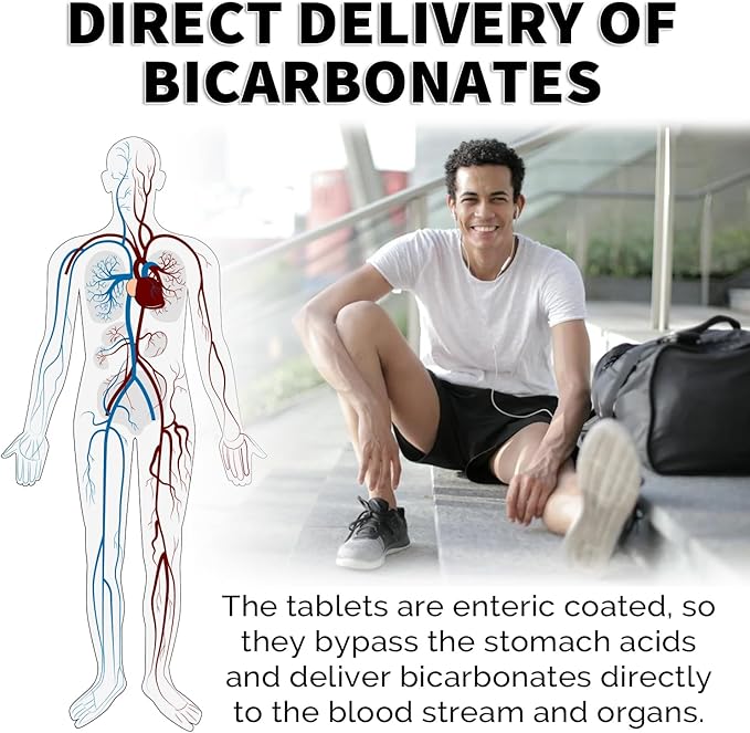 • Time-Release, Enteric-Coated Bicarbonate Tablets: A proprietary blend of potassium bicarbonate & sodium bicarbonate with a time-release compound that delivers bicarbonates into the bloodstream, assisting the body in maintaining desirable pH levels.