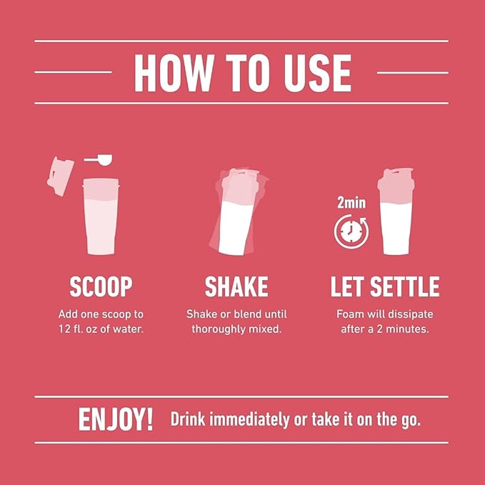 • SHAKE DON'T STIR: For best results, mix 1 scoop in 10-16 oz of cold water, shake & wait a minute or so for the natural foaming to clarify before drinking.