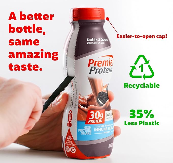 Premier Protein Shake, Cookies & Cream, 30g Protein, 1g Sugar, 24 Vitamins & Minerals, Nutrients to Support Immune Health 11.5 fl oz (12 Pack)