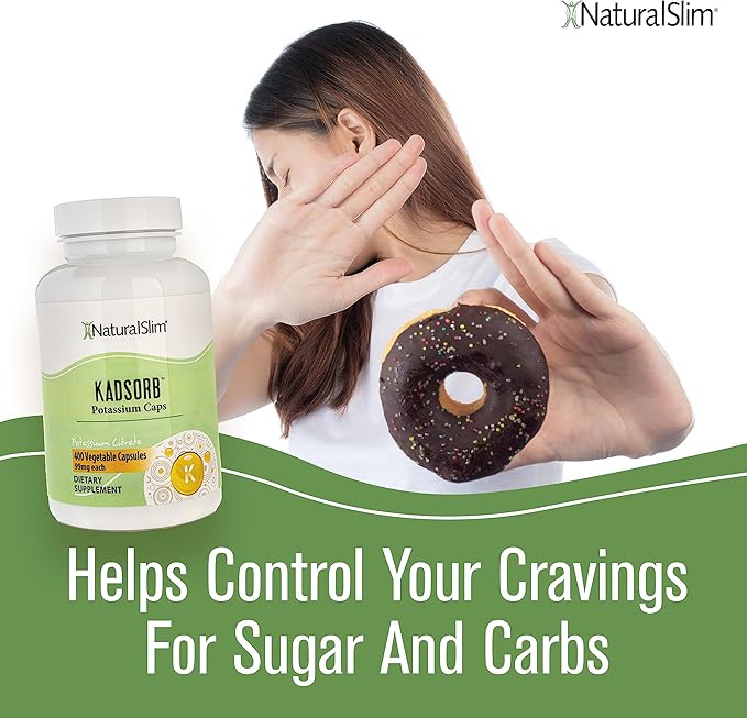 NaturalSlim Kadsorb Natural Potassium Citrate - Supports Electrolyte Balance & Normal PH, Non-GMO & Gluten-Free, Absorbable Potassium Supplement with Essential Minerals - 99 mg 400 Capsules (Solo)