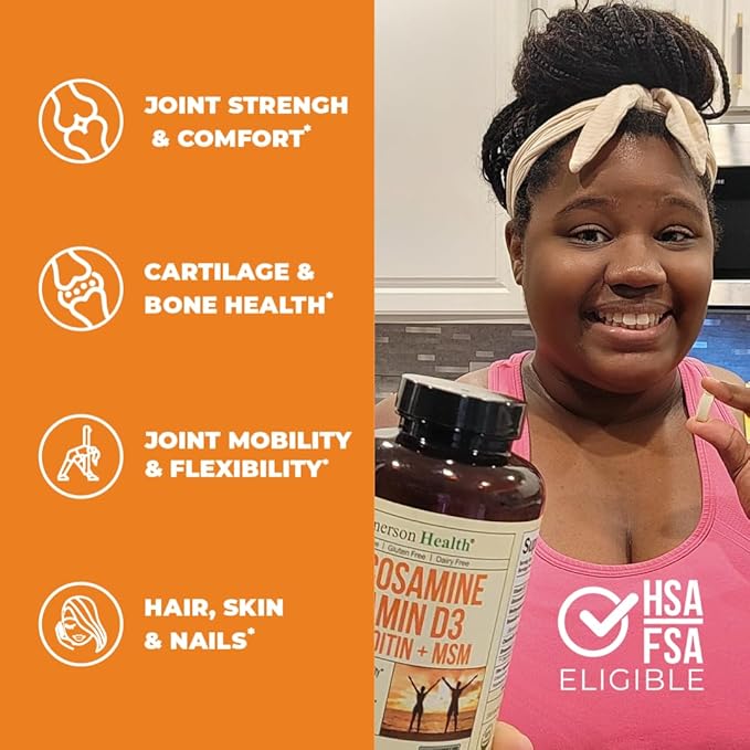 • SUPPORTS AN ACTIVE LIFESTYLE. All-in-one Glucosamine Chondroitin Joint Health Supplement. Glucosamine, MSM, Boswellia Extract, and Bromelain work together to Promote Joint Flexibility & Mobility. Relieve Joint Discomfort so you can move with ease.*