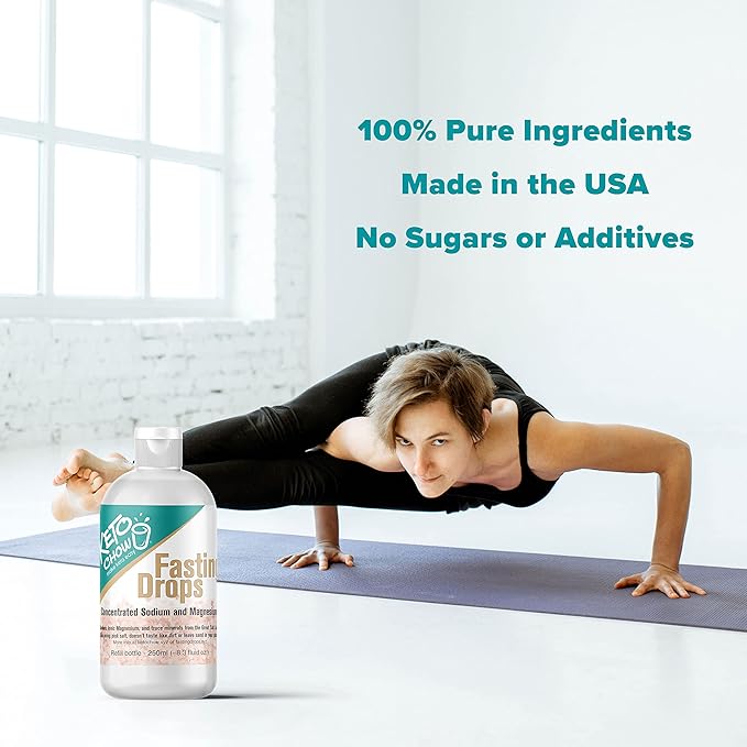 • Fasting Drops by Keto Chow Are Made Pure, No Artificial Ingredients, Colors, Caffeine, or Dyes. These fasting drops are made with a specific blend of the body’s much-needed electrolytes and trace minerals from the Great Salt Lake. Mostly sodium, these drops are delivered in their most bioavailable form, no artificial ingredients.