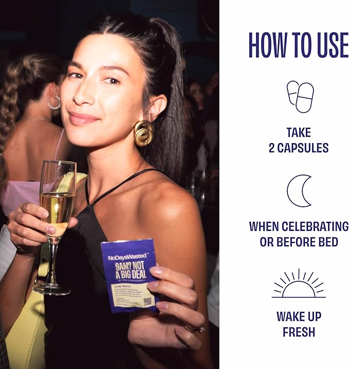 • CONVENIENT PACKETS SO YOU DON’T FORGET - 10 convenient servings, with 20 large capsules (good for 10 nights out). Take them with water to help you feel fresh. Easy to put in your pocket, purse or bag and share with friends and family. Take 1-2 packets per night.