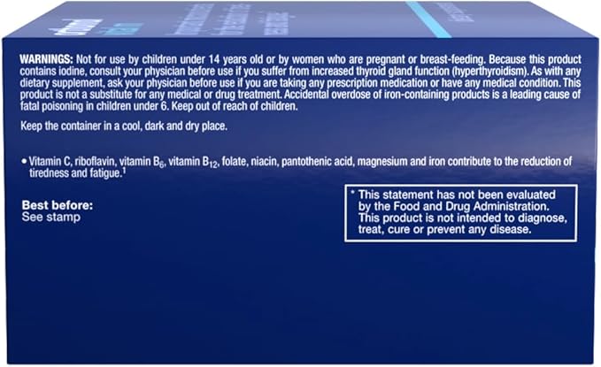 • Contains Vitamin B1 (thiamine), vitamin B2 (riboflavin), vitamin B6, vitamin B12, pantothenic acid, niacin, vitamin C, biotin, magnesium, calcium, iodine, manganese and copper which can contribute to normal energy-yielding metabolism*
