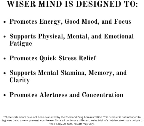 • Supports cognitive performance: In today’s fast-paced world, keeping up with the demands of daily life can be a challenge. Wiser Mind’s premium formula supports cognitive performance