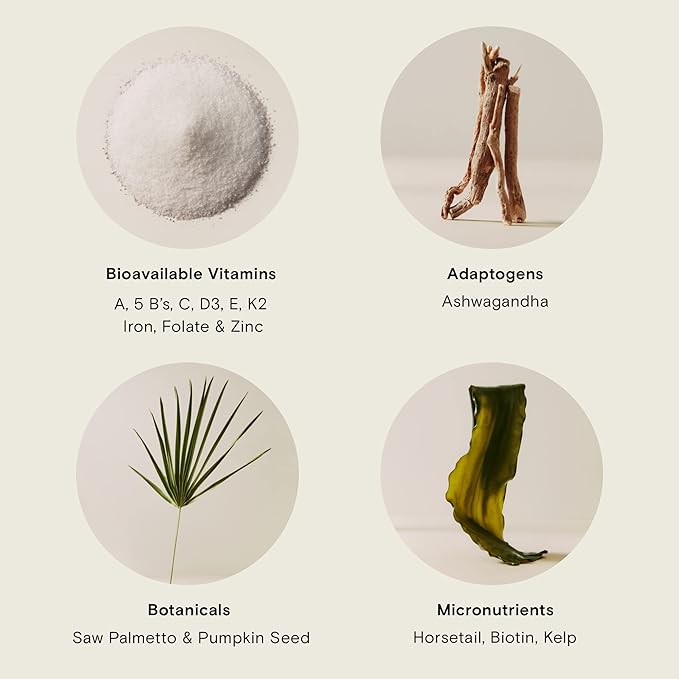 • Clinical Strength Blend - Adaptogens like Ashwagandha help balance stress hormones that contribute to thinning and hair loss. Botanicals like Saw Palmetto support healthy hair and promote thickness, and micronutrients promote hair strength and texture.