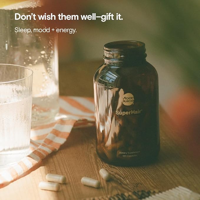 Moon Juice - SuperHair - Bottle (120 Capsules) - Hair Growth Vitamins - Multivitamins & Organic Ashwagandha - Reusable Glass Bottle - 3rd Party Tested - 100% Traceable - Vegan, Gluten Free, Non GMO