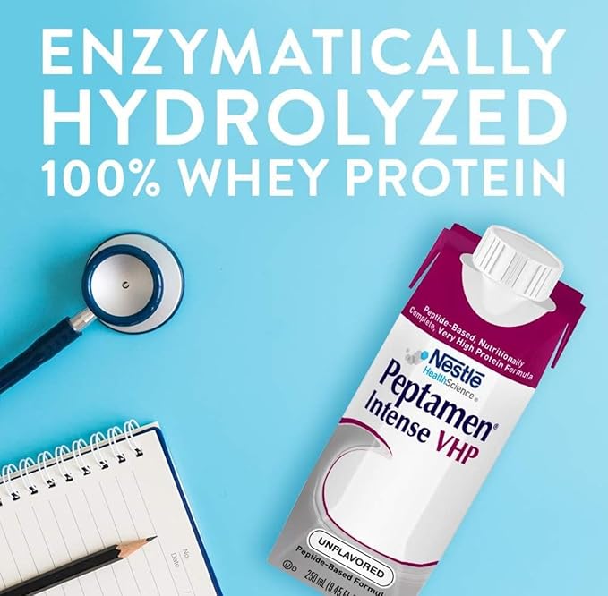 • USE UNDER MEDICAL SUPERVISION: Formulated with 37% of calories from protein, Peptamen Intense VHP is appropriate for G.I. impaired patients with increased protein needs & associated with improved glucose control.